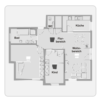 - in eingeschossigen Wohnungen: im Flur und Kinderzimmer(n)