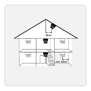 - An der Decke in der Raummitte, Raumgröße bis 60 m².