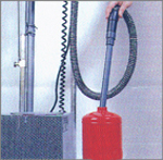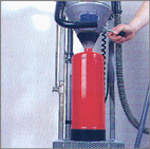 Feuerlöschmittel wieder einfüllen, (1) Dichtringe erneuern, Armatur ein-setzen, Feuerlöscher verschließen, über Füllanschluß mit Stickstoff beaufschlagen und Betriebs-druck wiederherstellen. Anschließend Dichtigkeitskontrolle durchführen.
